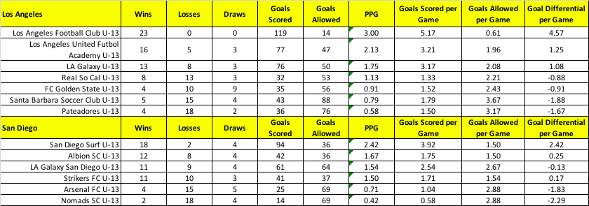 Short version is that LAFC, LAUFA, and LAG put LA as #1, and SD Surf, Strikers, Albion and LAGSD put SD as #2. The other regions have one or two top teams but aren't as deep as socal, and the top teams from other regions would all lose to LAFC and SD Surf.