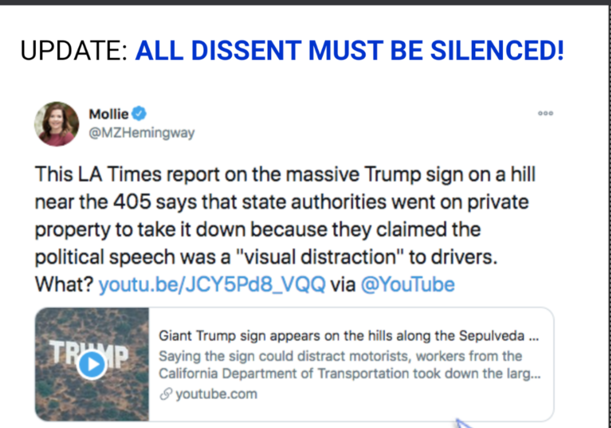 And calling a sign with the president's name on it "dissent" is so strange and dumb.