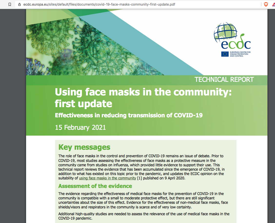 I fully agree they recommend masks.You left out the part where ecdc recommends that you wear face masks while indoors in public spaces.