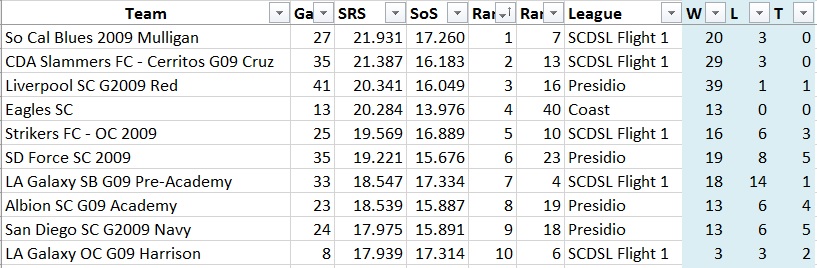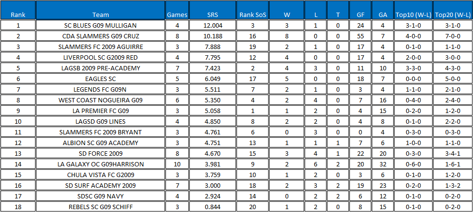 Yep, sorry to bust your bubble Soccer Affliction but Blues are the still the best team from a statistics standpoint. I have the full rankings...but I'm not posting them just yet since I know I will get BLASTED if I do. But to give a short summary, 1.) Blues 2.) CDA Slammers Cruz 3.) Liverpool. Newport Slammers will fall somewhere in the top four once they get some games recorded. Right below them you have Eagles, SD Force, LA Galaxy SB and Albion.A "Best Fit" algorithm would suggest that SoCal Blues is the best team so far!