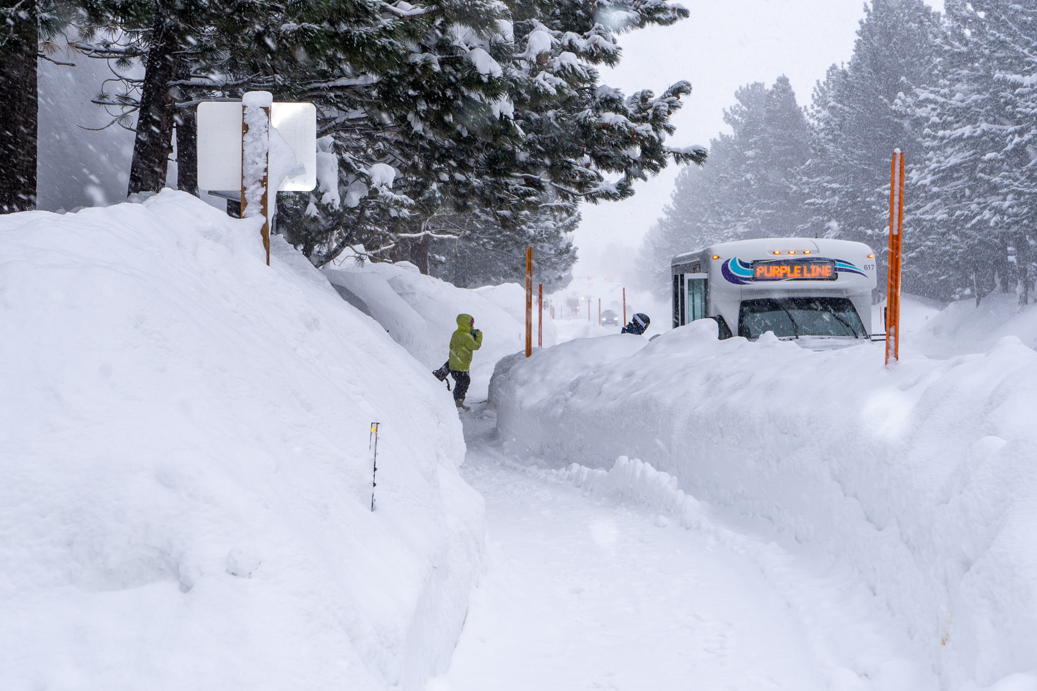 This looks like what used to be my favorite bus stop, at the foot of the driveway into my hotel in Mammoth Lakes.