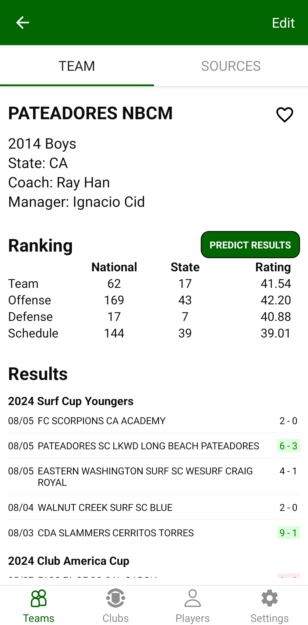 There is another great part of the app. You can click on any team on it and see the game results for that team. Nationals proved to me that the algorithm isn't perfect and I think there should be more weighting to the "difficulty of schedule". I say that because of the dominance of SoCal. We play great teams and a lot of other clubs play very sub-par teams, beat them 9-0, and the app gives them way too much credit. Really good teams can absolutely score goals at will against really weak teams and you learn nothing playing those teams if the score is 4-0 or 14-0.