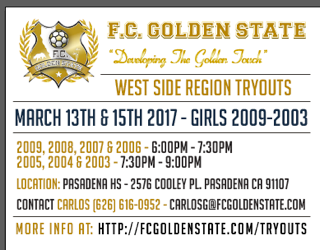 Girls 2006 Tryouts March 13th & 15th at Pasadena High School from 6:00 - 7:30