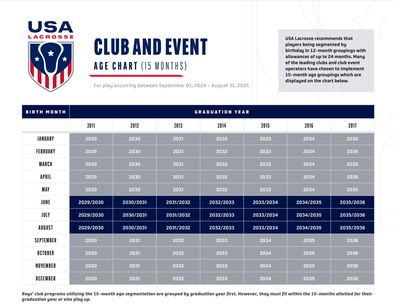 2. Players born 9/1 to 7/1 the next year only need a qualifying birth cert.