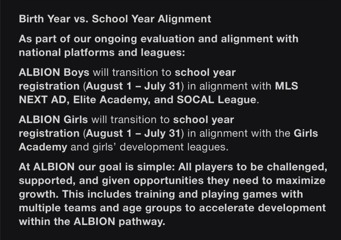 I have a feeling our club is going to take a firm stance that players cannot play up. That is particularly a problem for my son's Flight 2 team where half of the team were born later than the 8/1 cutoff. Has anyone's club taken a firm stance either way yet? It seems Albion will let kids play up based on the info above....