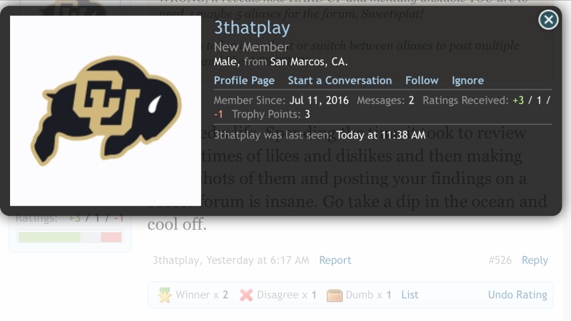 Nice try, but 3thatplay based on his profile lives in San Marcos and has Colorado as his avatar. The only player committed to Colorado who lives in San Marcos is KW (refer to Google committment spreadsheet) who plays for Carlsbad/Galaxy and class of 2018. Circumstantial evidence proves otherwise.
