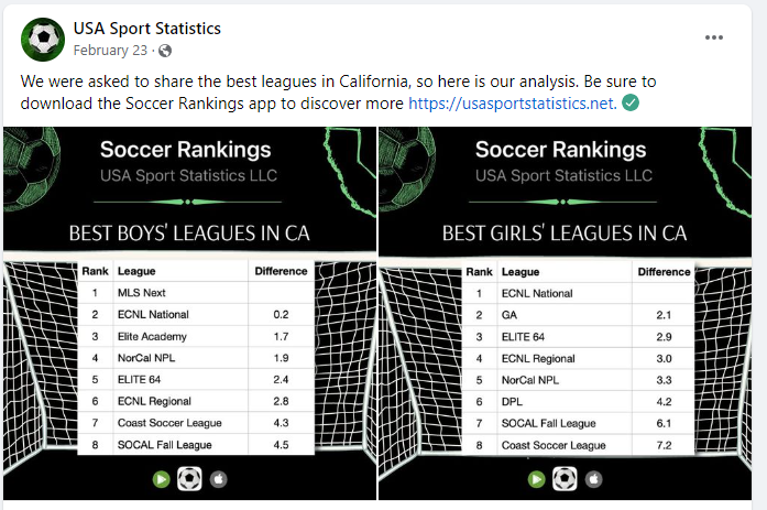 So, I started going to watch these different letter league teams play and practice in SoCal. At this time the Letter Leagues had expanded to include ECRL, EA, DPL, NPL. I looked at ranking sites like top drawer soccer and gotsoccer; those ranking sites versus in person team performance was absolutely ridiculous, still is. Youth Soccer Rankings (now Soccer Rankings app), was the only system that closely matches the actual observation of the teams, and is a legitimate resource for judging a teams relative level of play. Talking with parents while watching practices is one of the best ways to get info. about a team; most parents observing practice love talking about their kids team, and will fill you in on all the good and bad currently happening. I observed a lot of teams over a 7 month period, and it was clear, the Letter Leagues were not a waste of time, and are at a different level of play than the local leagues. It was also clear that hands down, on the girls side, ECNL had the highest level of play. GA, DPL, NPL, now E64, and of course ECRL were not at the same level. That doesn't mean these are not high level leagues, they are good options, but reality is they are not the same level.