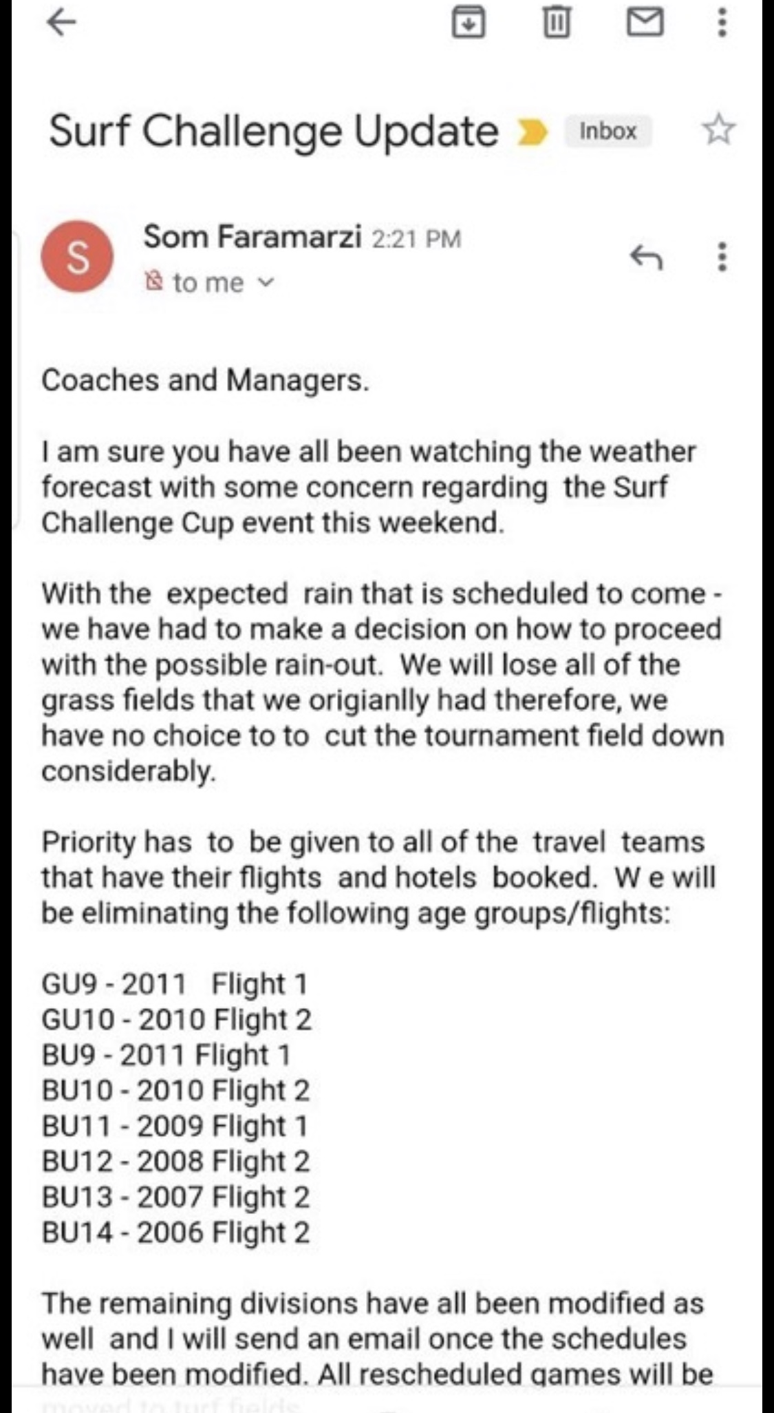 If tournament organizers were smart they would secure a turf only facility (e.g. J Serra) and market it as a rain-proof event.