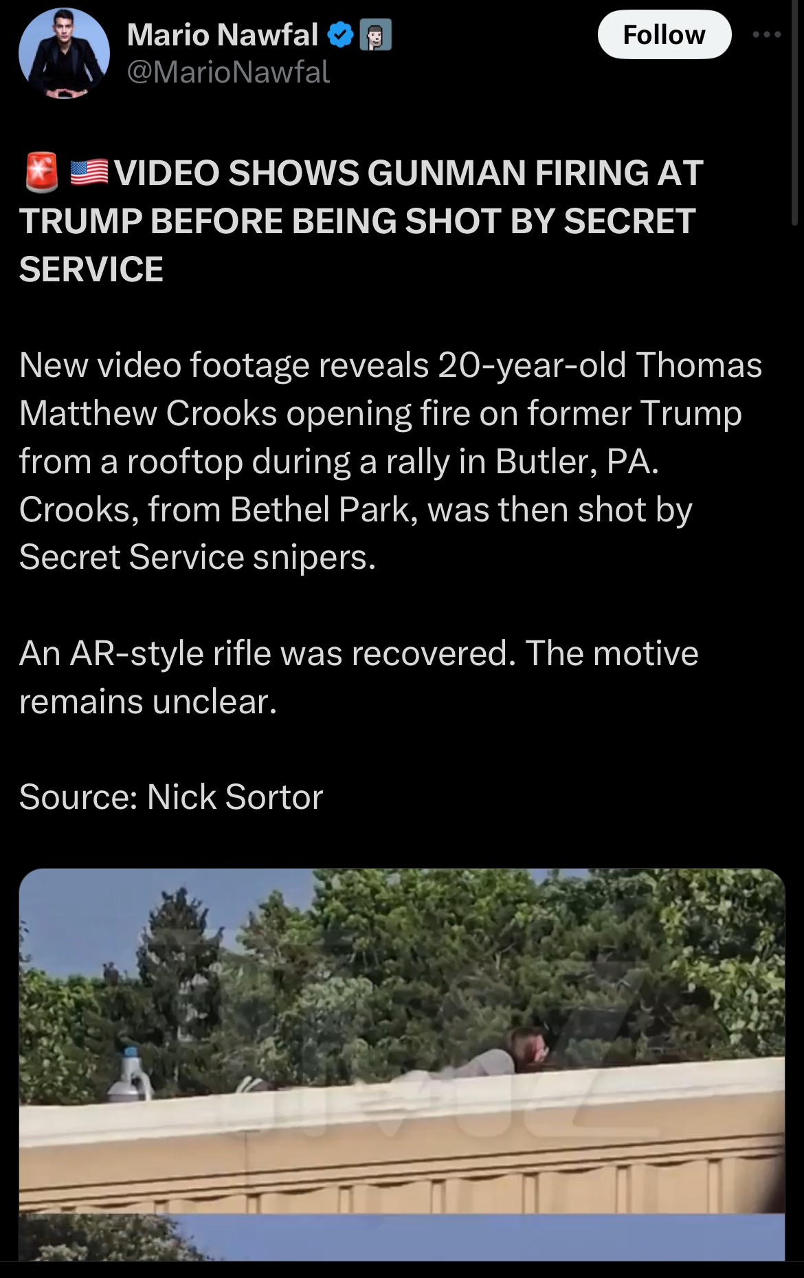 False.Reports the Trump shooter identified as Mark Violets, a well known Antifa extremist/terrorist.