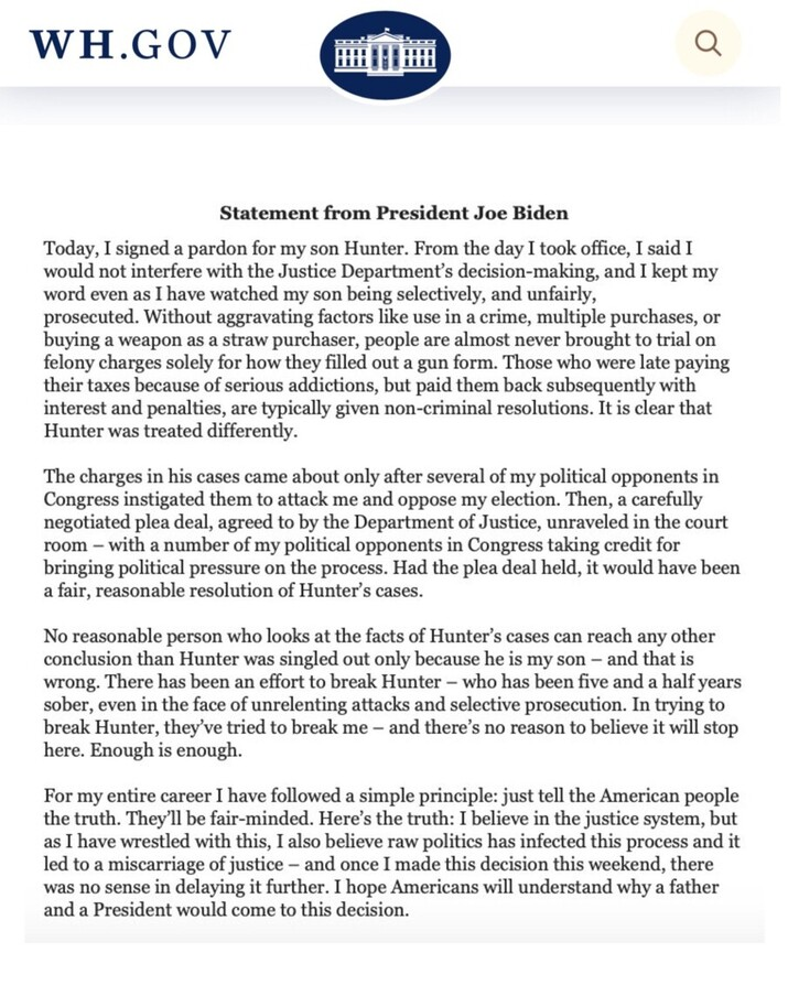 Actually, dude gets a full pardon for 10 years of crimes. Must be nice. Pay for play at its finest. Maybe Hunter cut a deal with Trump. Turn in Laptop from Hell to Mac's place or go to prison for life or worse. I don't know 100%. Lot's of anons are speculating on TS. I will report back here what I find.