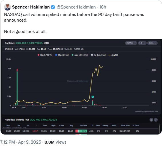 No, but we'll know if she did jump in ahead of time based on a tip off from someone (who do you think in the Trump admin is tipping her off?), in May when congress have to do their next financial disclosures. I'm not sure even her wealth would move the needle like that though.