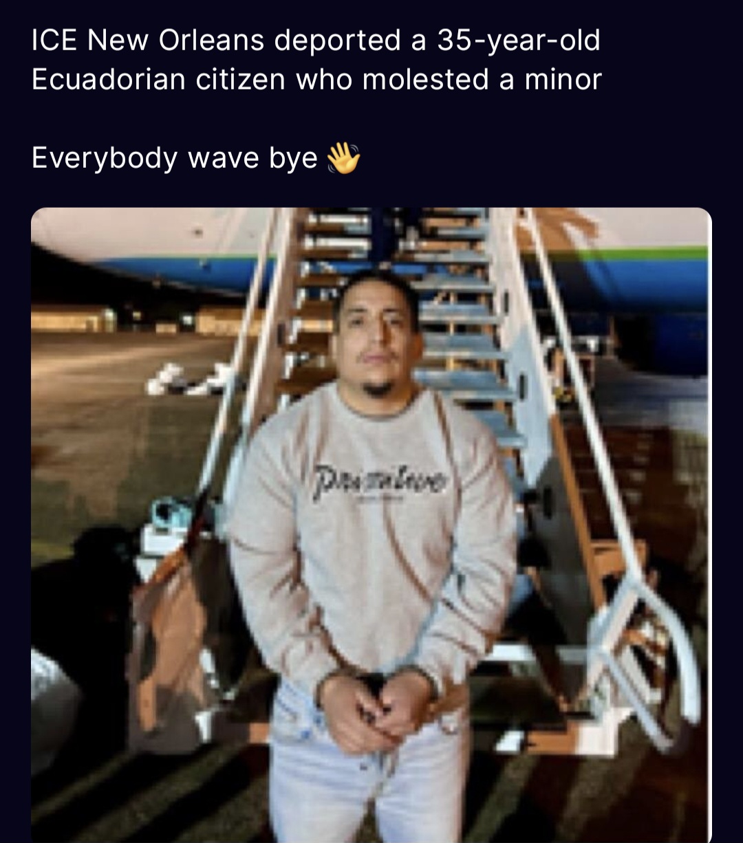 At least Trump is doing something productive with our money. 4 more years of Pedo Joe or Heels Up would have been another 4 years of bleeding. You kids are pissed a twice conviction MS-13 member was shipped out of the country.