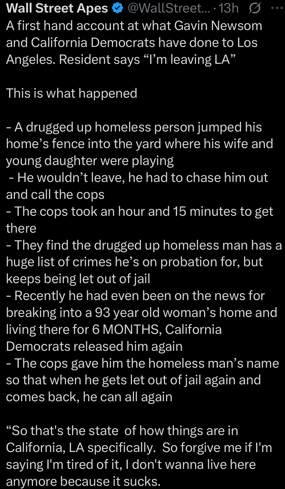 It's insane, deliberate and insane to watch LA fall like thisTo du du’s contention that California has always been this way …