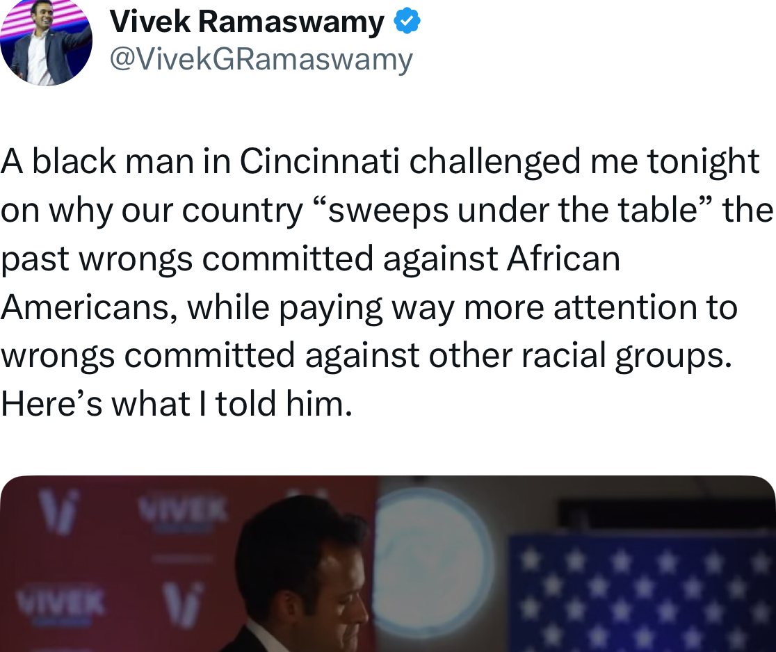 Vivek is a lot more patient than I would have been. And Jason Whitlock has become the Uncle Tom of Sports because he refuses to allow the deck of victim cards at any of his games.