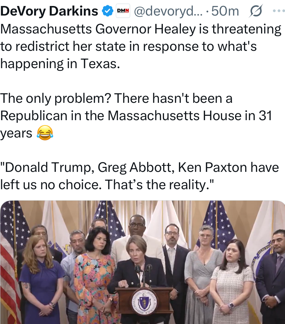 Yeah and then you have CA. About 40% of the state votes R. And yet only about 20% of the congressional delegation is R.
