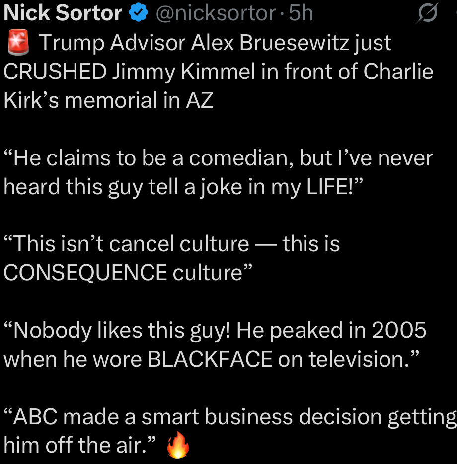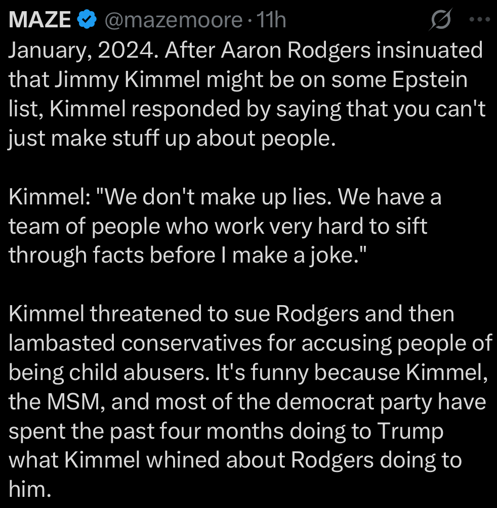 All that having been said, I don't like the suspension of Kimmel. Yes, Kimmel was suspended by his employer, but the comments from the FCC, Trump and others on the right smack of censorship.