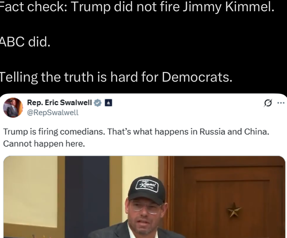 Is it for dramatic effect when they say Kimmel was fired? He's been suspended. Maybe Fang Fang ate too much Chinese spy pie.