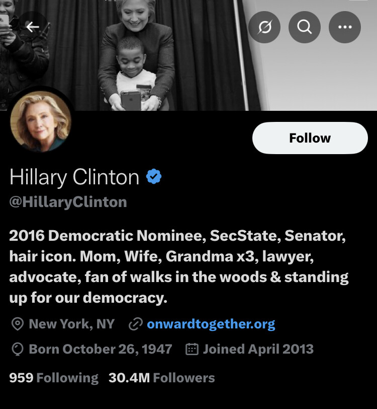What is a "hair icon"? They also forgot a few of her hobbies: Washing other women off her husband's dick, losing elections, deleting emails and looking as frumpy ass possible.