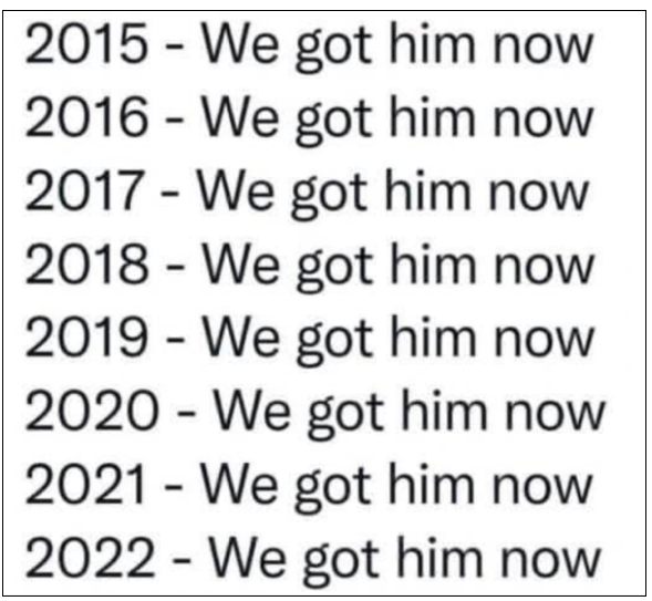 The Mueller Report did not find evidence to warrant any criminal indictments regarding offenses having to do with those central accusations—not against Trump, his associates, or any other American. Specifically, the report stated: “[T]he investigation did not establish that members of the Trump Campaign conspired or coordinated with the Russian government in its election interference activities.” The Intercept’s Glenn Greenwald provided a