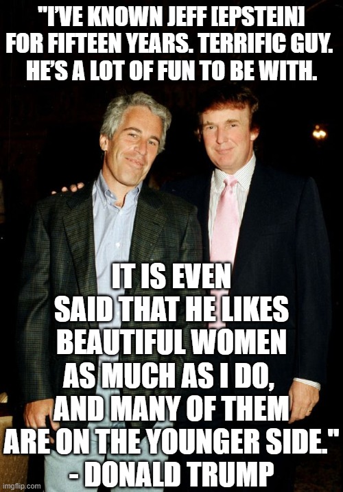Nothing new to say? Desperation looks good on you...Epstein said Trump has “no moral compass” because he “likes to have sex with the wives of his best friends.”