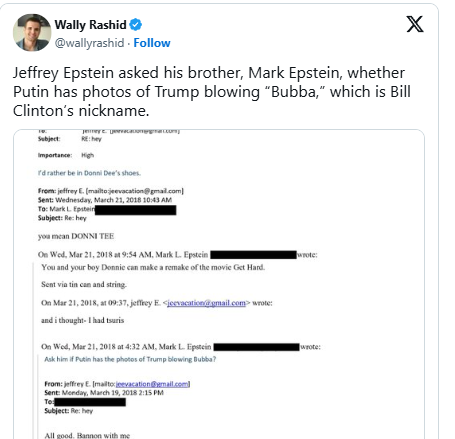 This one (commenting on one of the Epstein emails released by the House Republicans) surprised me on multiple levels --