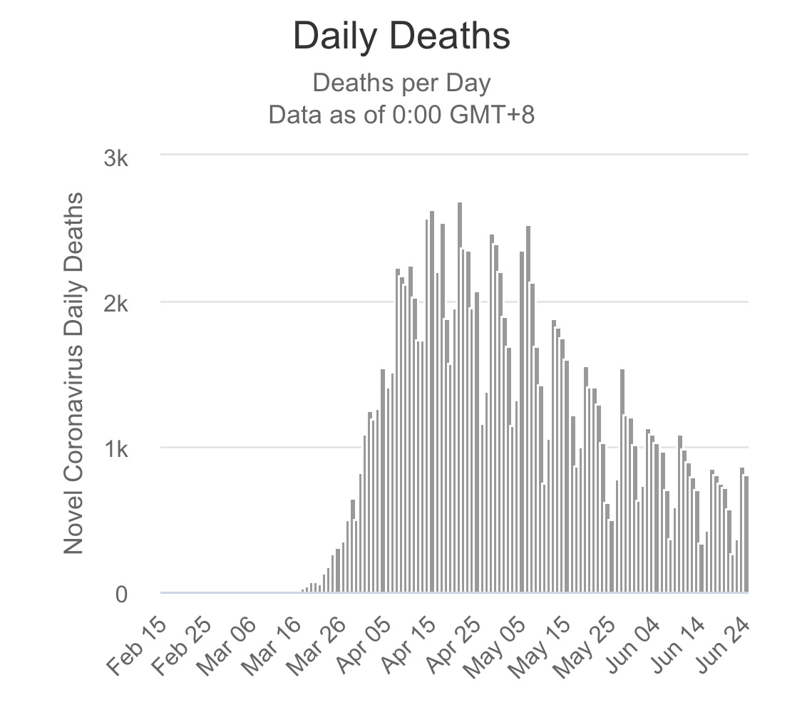 That doesn't mean trending up. The daily rate of deaths in the US is trending down. I gave you the graphic.Yes, more deaths. The CDC predicts 130-150k by July 18th