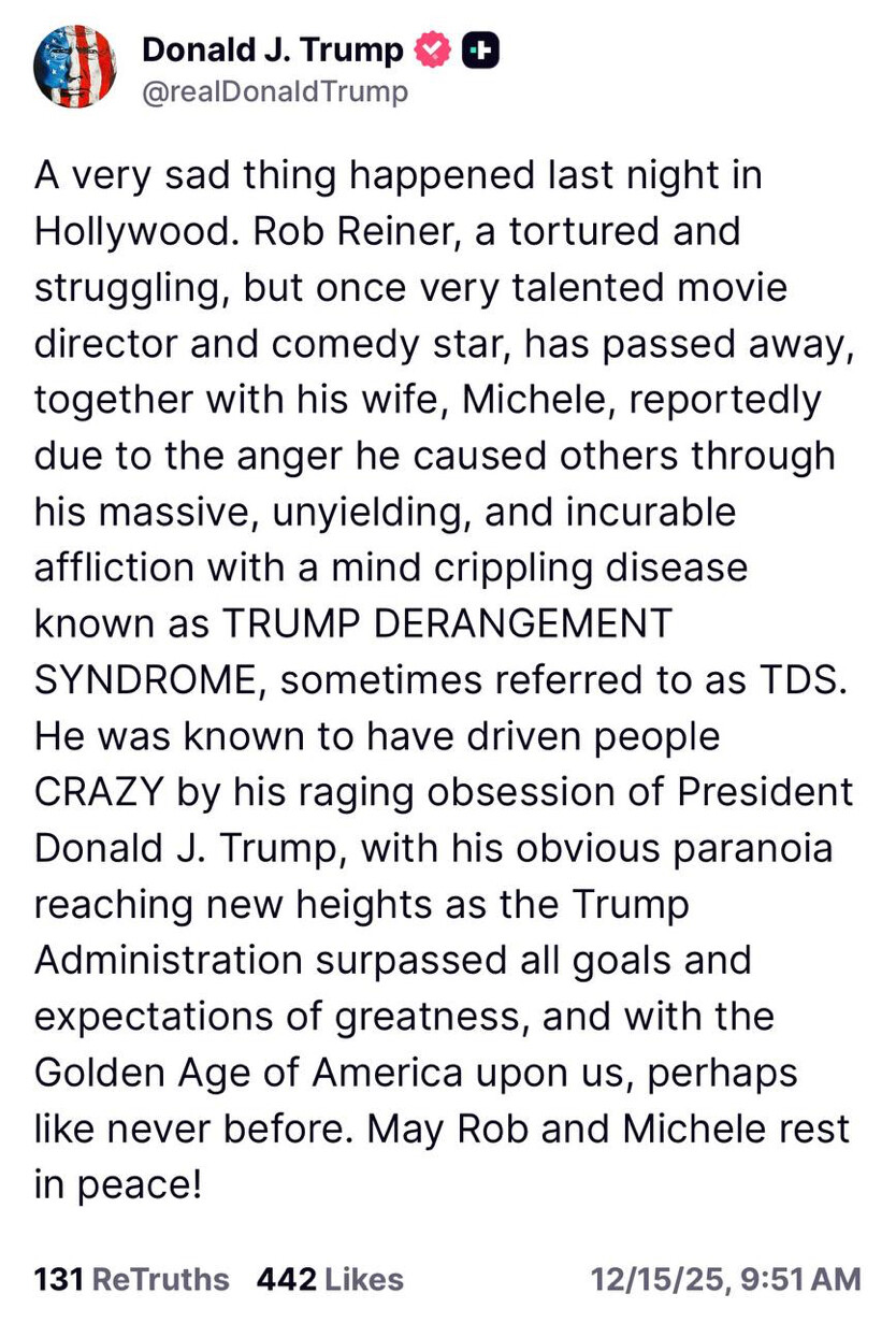 Now that every time I hear TDS I will think of Trump’s comments and those that still love him.He could have gotten his same point across by simply saying, "while I disagreed with his politics, he was one of the greatest directors in American history and he will be missed."