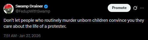 Dude, the Left doesn’t care about anyone’s life that doesn’t toe their deranged ideology and kneel down to their absolute power. Too many on the “non-Left” don’t realize what kind of fight they are in. They don’t realize the problem isn’t “not enough compassion” for the Left, it’s too much compassion for them and not enough expectation of responsibility. The Leftists are interfering with the lawful apprehension of lawbreakers. They are interfering with the will of the people to do what the people elected the President to do. They are undermining our Republic. Worse, their leaders are encouraging this behavior - taking advantage of a base that is demonstrably mentally ill to keep power.