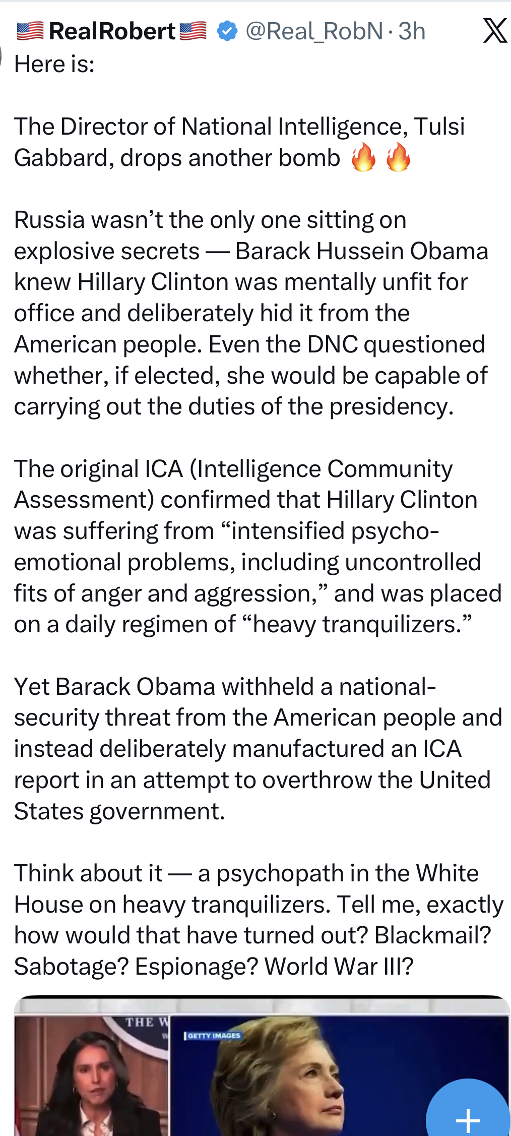 The @DNITulsiGabbard is clearly pulling her weight and then some in this administration and many of the elites in & just out of government fear what she might divulge next."