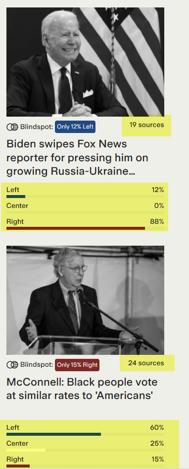 Ideology over facts? I prefer a site that fact-checks, I can discern the slant pretty easily.I like the app - Ground News. You can click an article and it will categorize the org covering - it will also allow you to click to others and categorize them. It will also group the L/C/R and give % coverage, e.g. an article is getting coverage L/C/R 40%/40%/20% for example.